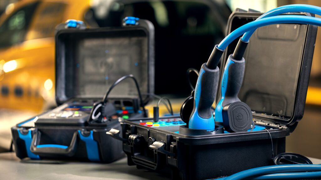 Der A 1832 Ladekabeladapter Mode 3 wird für die Überprüfung der elektrischen Sicherheit von Ladeleitungen Mode 3 für Elektrofahrzeuge (EVs) mit Typ-2-Steckern verwendet. Bei der Verwendung zusammen mit Metrel Autosequenzen, die in den gängigsten Metrel-Prüfgeräten vorinstalliert sind, kann die komplette EV-Ladeleitung und dessen Funktion mit einem Knopfdruck getestet werden. Für eine professionelle Messung kann ein dementsprechender Prüfbericht mit der kostenlosen MESM Software erstellt werden.