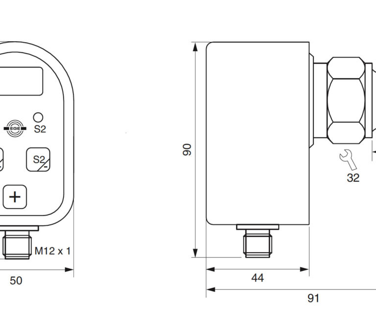 Der Drucksensor umfasst als Kompaktgerät die gesamte Mess- und Auswerteelektronik und ist für 24 V Gleichspannung vorgesehen. Neben zahlreichen programmierbaren Zusatzfunktionen hat er 2 PNP-Schaltausgänge und einen 4…20 mA Stromausgang.